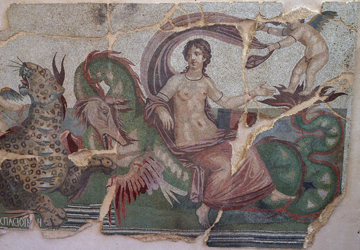 Gypsy girl mosaic in the Zeugma museum in Gaziantep, Turkey. The Museum is one of the largest mosaic collection in the world. The ancient city of Zeugma have been founded by Alexander the Great