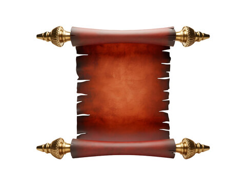 Lifting senior hand rolling ancient parchment scroll with gold ring and ink-stained vellum