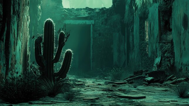 Grand ruined hall, celestial observatory, with architectural details and sunlight beaming through opening, evokes history and decay.