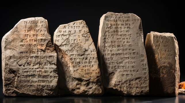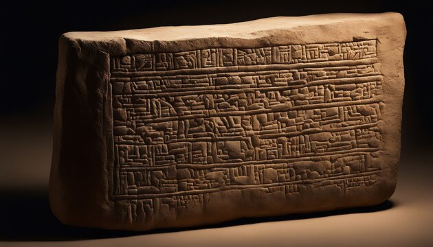 Close up of an ancient cuneiform tablet with detailed inscriptions on a stone surface artifact relic