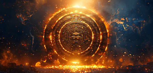 ancient ornament aztech geometric symbol, mayan calendar background