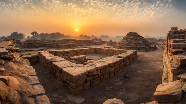Wide-angle image of the ancient ruins of Lothal