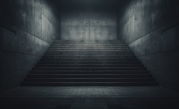 Dark concrete staircase in the style of minimalism and modern architecture