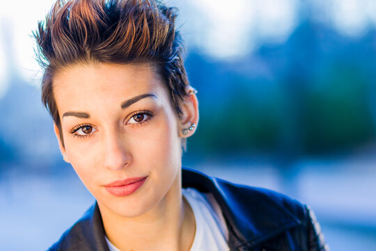 headshot froma a yooung hispanic female. Beautiful woman with an ambiguous hairsyling