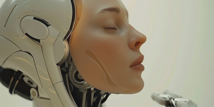Futuristic female android with glowing eyes and sleek design, AI concept