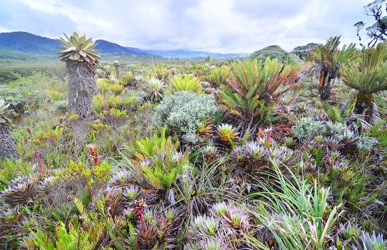 The Puracé National Natural Park with Espeletia plant , commonly known as frailejón in Colombia.