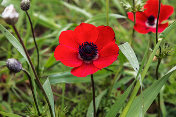 Wild flower in nature, spring season; anemone (Anemone coronaria)
