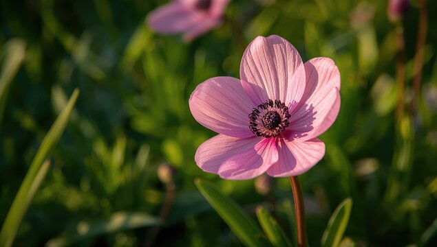 Pink Anemone Coronaria blooming spring flower, symbol of seasonal change