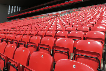 Red chair rows in football stadium.