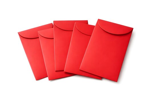 Five Red Envelopes (Ang Pao) Arranged on White Background