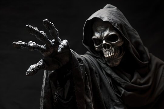 grim reaper - angel of death - hooded figure with ghastly hand reaching