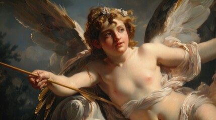 .Glowing light flying angel in heaven. Religion spiritual faith mythology vibe