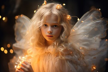 Majestic glowing feathery angel wings amidst snowy winter landscape