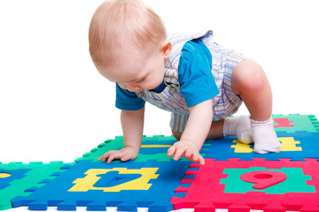 Little caucasian girl isolated on purple background Little caucasian girl isolated on purple background having some great idea, concept of creativity.