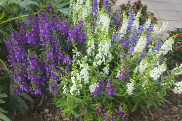 Garden flower bed filled with angelonia plants