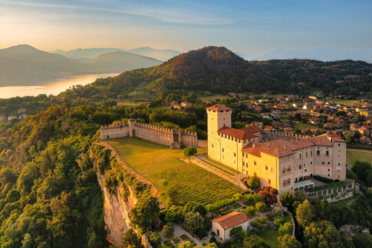 Borromean Castle of Angera aerial shot.