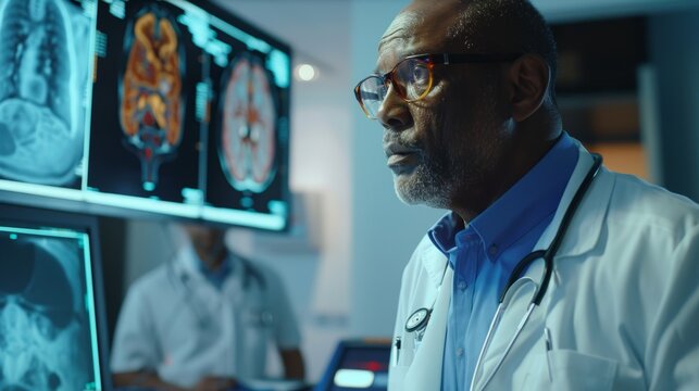 Cardiologist Analyzing CT Coronary Angiogram Results on Screen During Patient Consultation