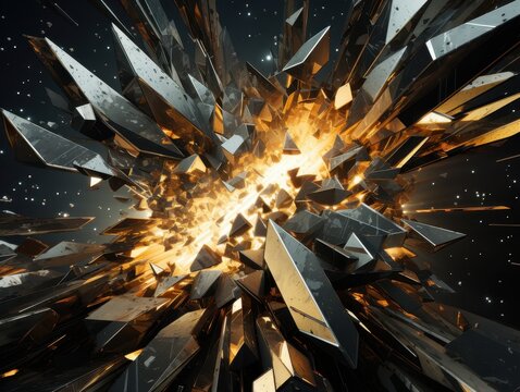 A transparent crystal podium with angular features, illuminated from behind, set against a dark background