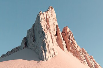 A dark, porous pyramid partially submerged in white sand, its surface textured and speckled with lighter green tones, casts shadows within the undulating sand dunes