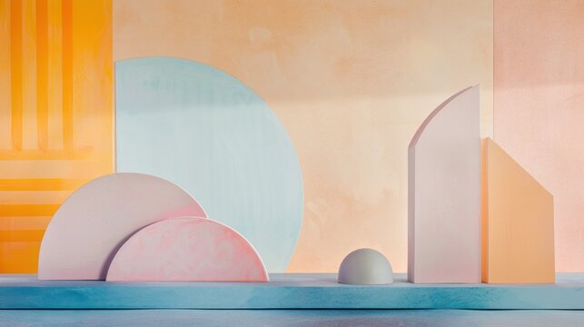 Abstract geometric shapes on beige background with pastel accents