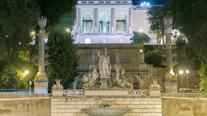 Fountain of Dea Roma timelapse in Piazza del Popolo with Pincio terrace in the background