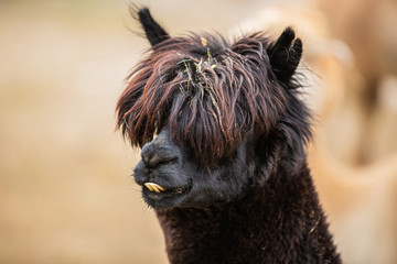 Close up shot of llama with funky haircut