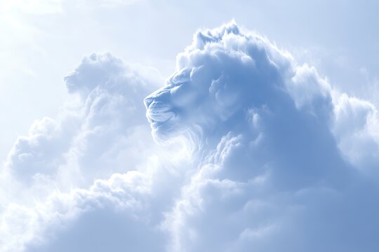 Majestic lion faces formed by cloud shapes against a blue sky