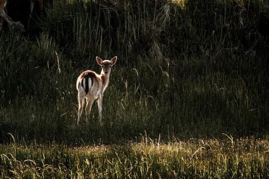 Concept Nature reserve conserve Wildlife reserve tiger Deer Global warming Food Loaf Ecology Human hands protecting the wild and wild animals tigers deer, trees in the hands green background Sun light