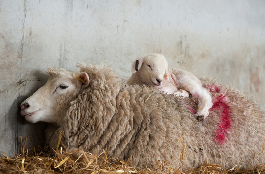 Vietnamese lol-bellied piglets resting in straw, focus on animal well-being