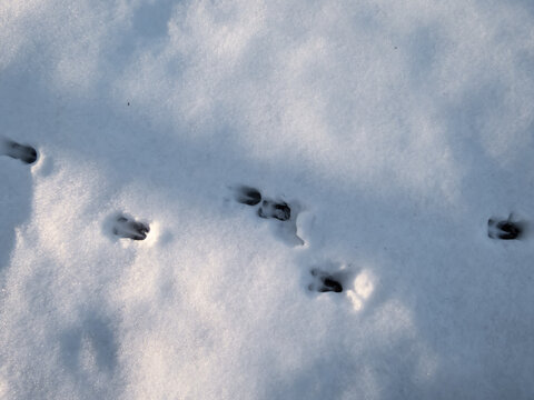 Cat footprints in the snow. Cat tracks on fresh snow.