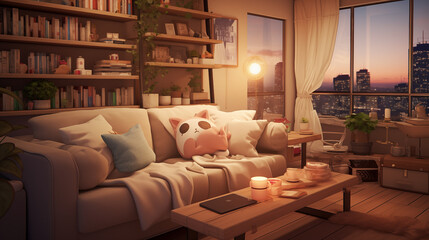 Cozy Living room in the anime style.