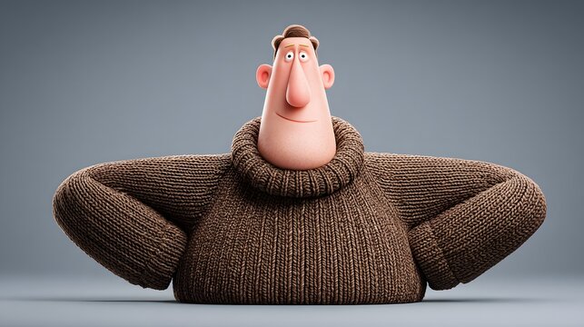Animated character wearing a brown sweater.