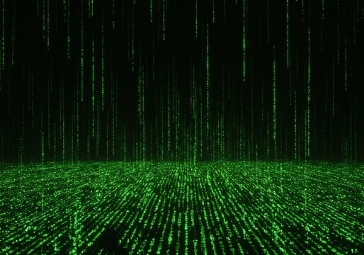 Man speaking into smartphone with green binary code overlay for voice ai and cybersecurity