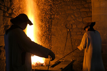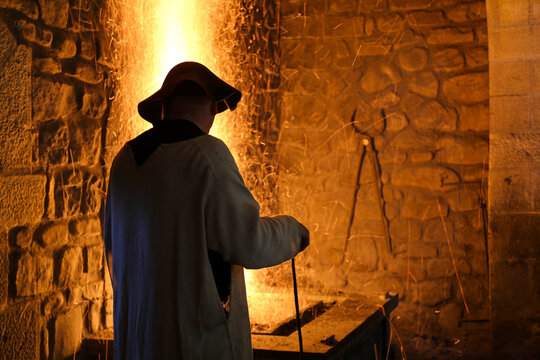 forja medieval antigua trabajador de hierro forjando hierro caliente en la fragua ferrón país vasco legazpi 4M0A1038-as22