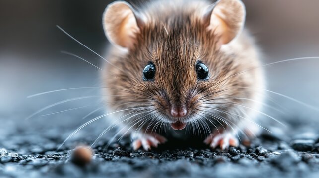 An adorable mouse stands on a textured ground, near a tiny object, highlighting innocence and survival instincts in an intricately detailed scene.
