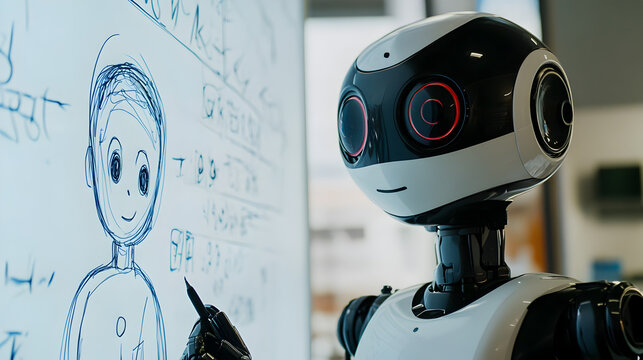 Robotic Concept Sketch with Animated Character on Whiteboard