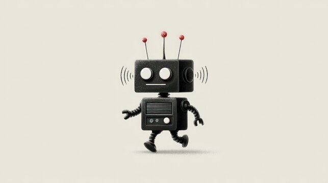 Robot character walking on off-white background.