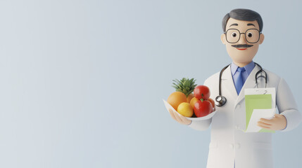A 3D animated character of a doctor holding a stethoscope, smiling, with a white background.
