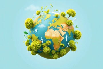 Animated Green Earth with Renewable Energy and Vibrant Foliage
