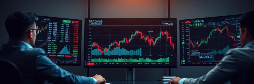 Business stock market trading info graphic with animated graphs and data analysis on display screen, data numbers, charts