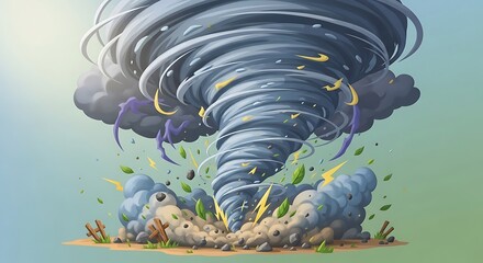 Powerful Tornado Illustration with Lightning and Debris