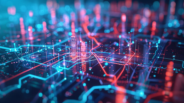 An animated city map on a digital screen, with glowing lines connecting 5G towers and highlighting the network's expansion, 5G networks rollout, blurred background, with copy space