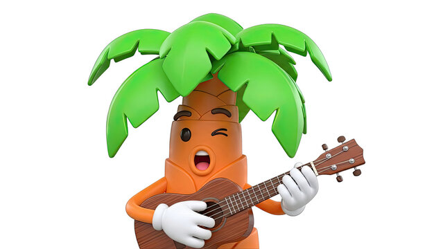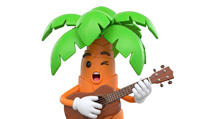 Cartoon Palm Tree Character Playing Ukulele