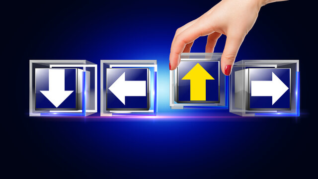 Digital arrow patterns on blue background implying growth