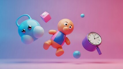 Cheerful Cartoon Clock Character in a Modern Office Environment