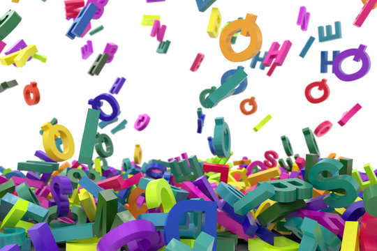 Colorful 3D Alphabet Blocks Tumbling in Playful Chaos