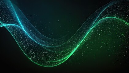 Abstract green and blue particle background. Flow wave with dot landscape. Digital data structure. Future mesh or sound grid. Pattern point visualization.
