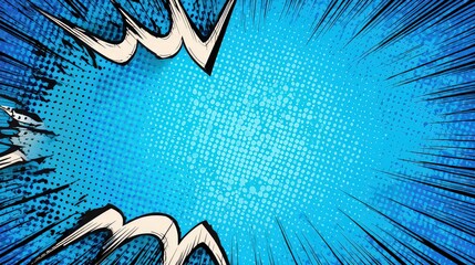 A vibrant comic-style speech bubble against a black background, ready for text. The blue outline and burst give it a dynamic, engaging feel.