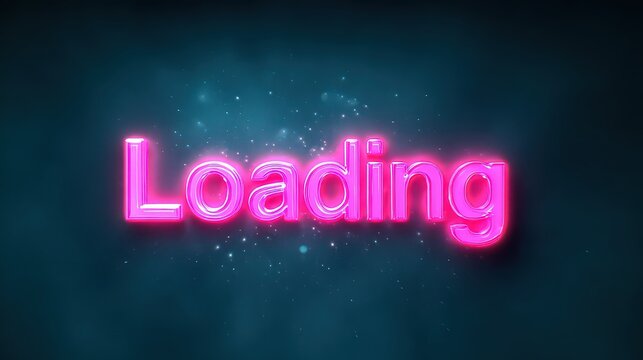 Bright pink Loading text set against a dark, smoky background, perfect for digital interfaces, websites, or presentations that convey progress or waiting,