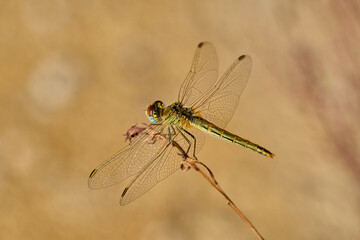 red dragonfly macro close up detail on a stick - odonata anisoptera epiprocta